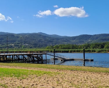 Estamos en la playa fluvial de Vilarello, un lugar perfecto para disfrutar de un buen desayuno en pleno río Ulla.